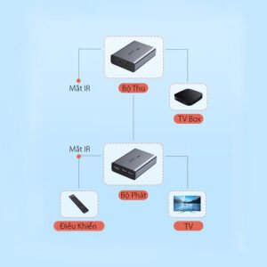 - Thiết bị kéo dài HDMI + USB 150m qua cáp mạng Lan cat5e, cat6 Ugreen 60323 (Transmitter) cần kết hợp với Ugreen 70438 là đầu nhận (Receiver) để có thể sử dụng, với tín hiệu HDMI kéo dài khoảng cách lên tới 150m thông qua cáp mạng cat5e, cat6 hỗ trợ độ phân giải Full HD 1920 x1080/60Hz, giải pháp lý tưởng có thể thay thế cáp HDMI bằng cáp mạng này giúp bạn hoàn toàn yên tâm khi đi các hệ thống dây âm tường, đi dây cự ly xa, và giảm chi phí thi công, bảo trì…