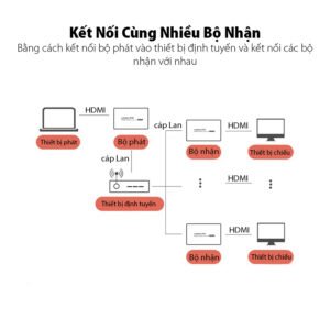 - Tính năng : Kéo dài tín hiệu HDMI qua cáp mạng Lan cat5e, cat6