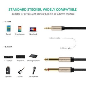 - Cáp âm thanh 3.5mm ra 2 đầu 6.5mm dài 1m Ugreen 40790 chính hãng kết nối từ điện thoại, laptop, máy tính bảng được trang bị cổng 3.5mm sang các thiết bị âm thanh cổng 6.5mm như loa, bộ trộn âm thanh, đầu DVD, Amplifier….Cáp Audio là một lựa chọn tuyệt vời cho những người yêu thích âm nhạc.